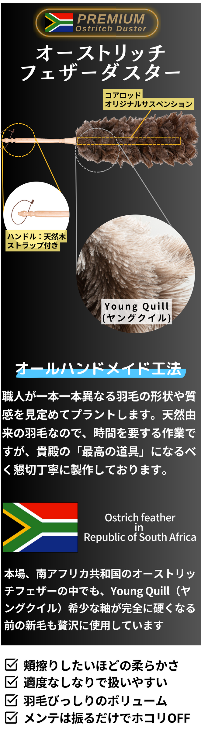 ホコリを寄せ付けないオーストリッチのフェザーダスター